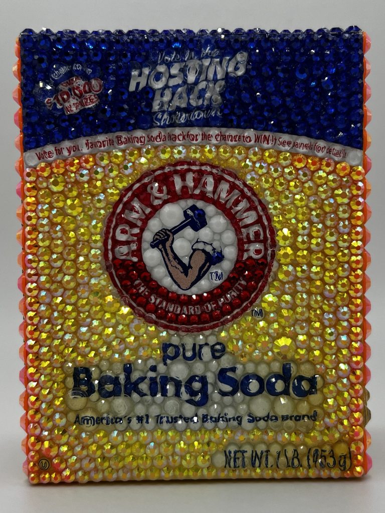 Commissioned hand-bedazzled Arm & Hammer baking soda box for Church & Dwight brands, 2024.