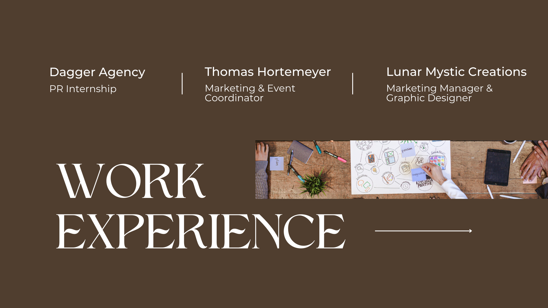 I am a passionate digital marketer and artist with over 5 years of experience in social media management, content creation, and event marketing. I currently work as an Event and Marketing Coordinator at an IP law firm, where I split my time between marketing and administrative duties. I also run my own small business, Lunar Mystic Creations, where I design and sell handmade jewelry and artwork, curating my brand’s aesthetic and building its presence across multiple platforms.